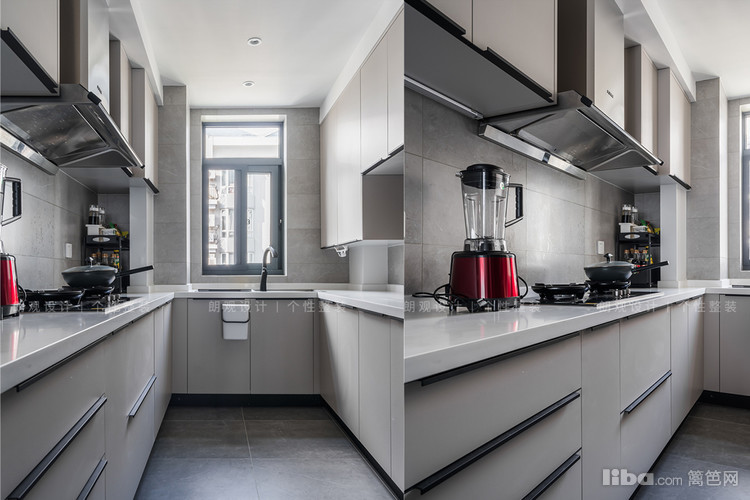 厨房与餐厅之间以三联动玻璃移门分区,隔而不离,精致通透,让功能区之间更有互动感。