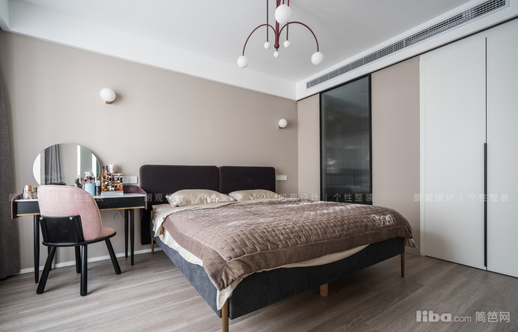卧室不同客厅的清爽宜人,而是以饱和度较低的奶咖色为主色调。温暖纯净的色彩充满了治愈力,于淡雅中透漏着温暖,无形中自带高级感,营造着舒适宜人的睡眠氛围。