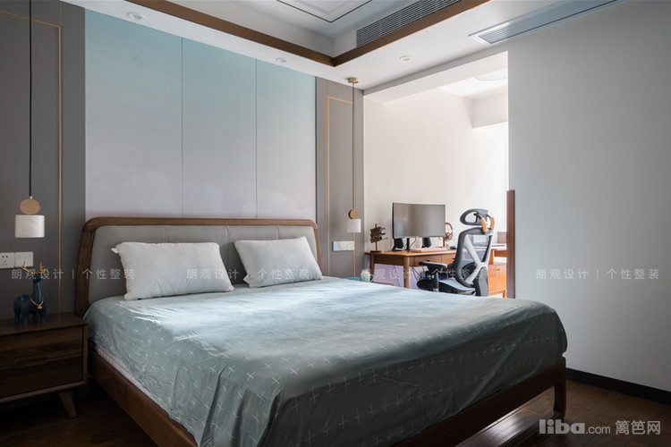 主卧拥有现代轻奢的空间质感,精致的黄铜元素与原木家具产生碰撞,整个空间在追求温润安逸的生活节奏时,融汇了业主对现代生活的品质追求。