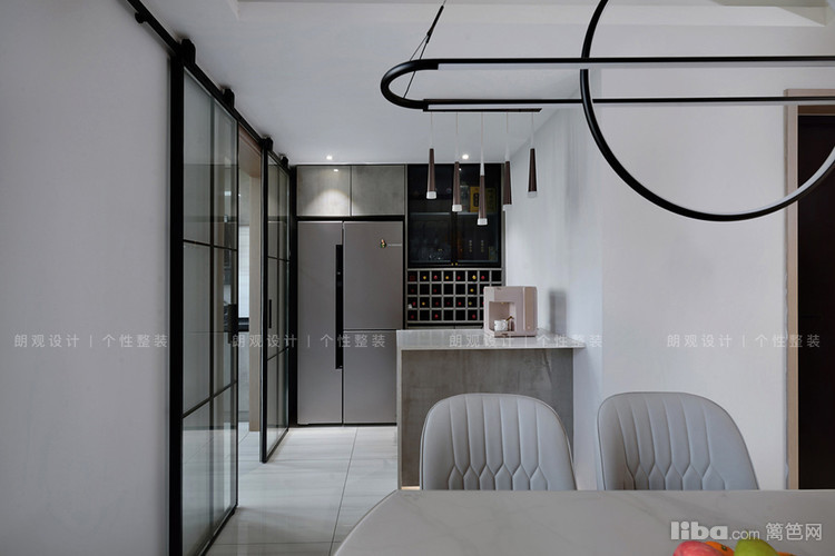 厨房采用中西厨结合,西厨定制柜结合了酒柜的设计,可以将珍藏的各种酒类合理安置