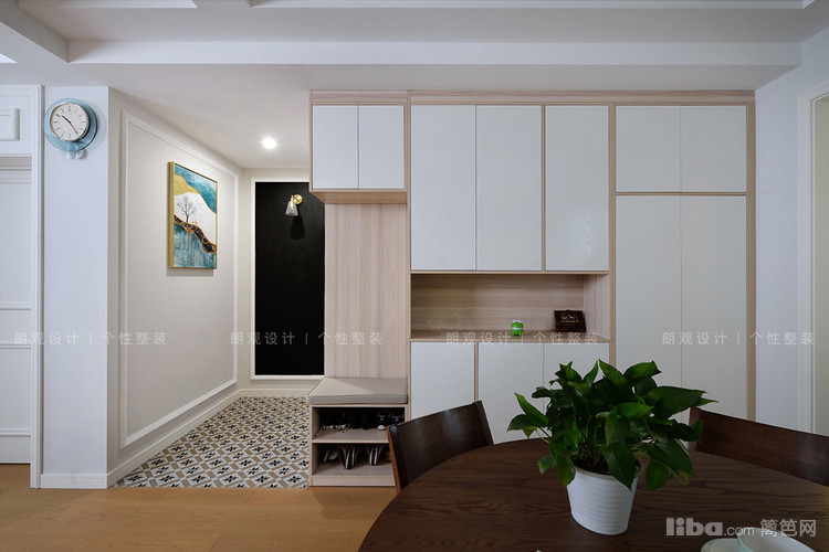 门厅面积小,不能满足必要的储物功能,考虑到家里小孩子写写画画,容易弄脏墙面,索性在门厅制作了一面黑板墙,供孩子玩耍。