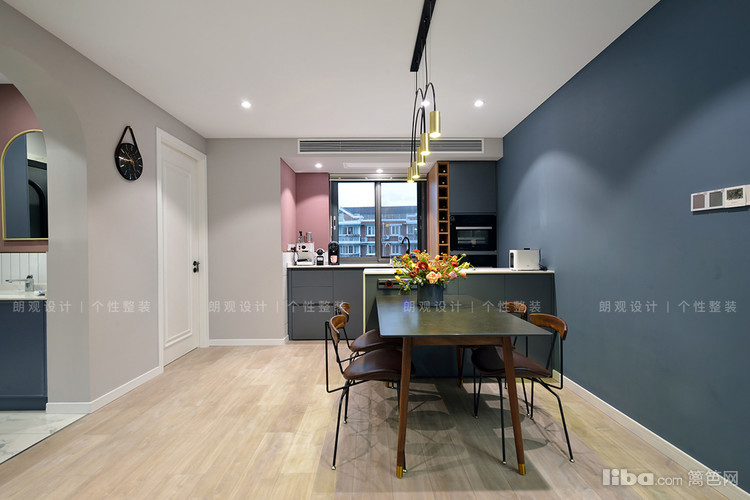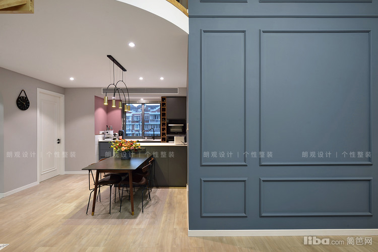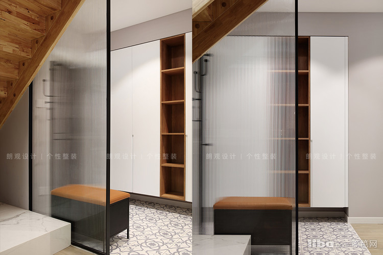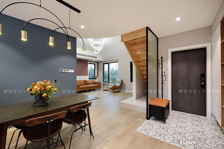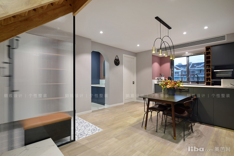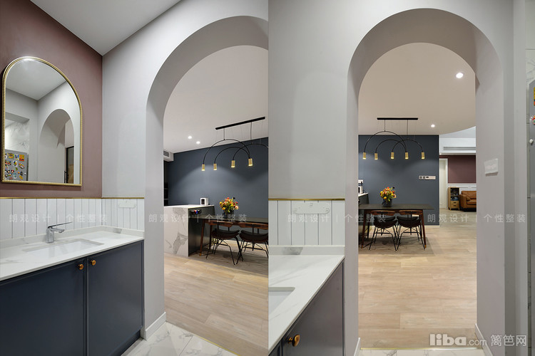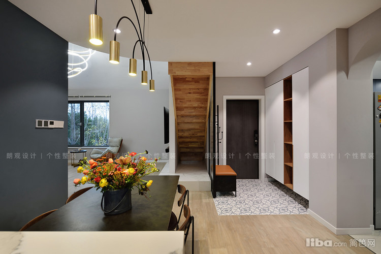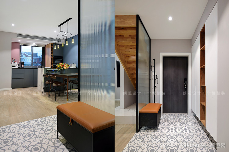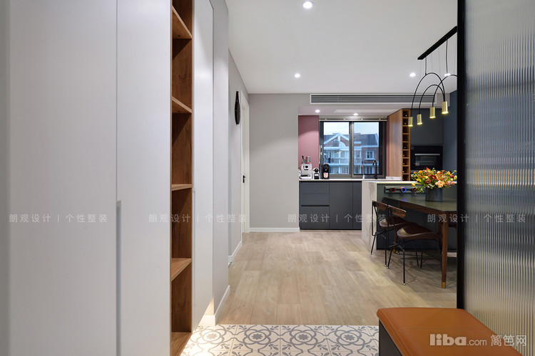 设计师改变临近厨房的门洞开口,为业主增加了一组玄关柜,柜体采用开放+封闭形式,既可以保证空间整洁,又能避免空间呆板