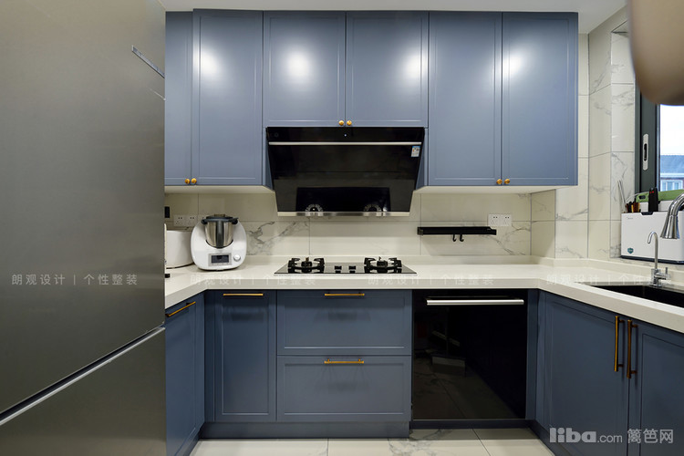 中厨内部面积不大,设计师采用上下分离式橱柜设计+U型动线,将各功能区划分的井井有条,最大限度利用空间,满足业主烹饪需求。