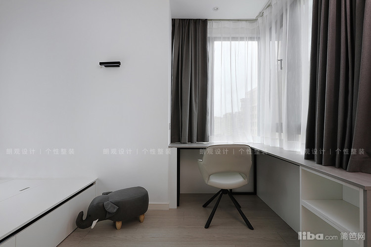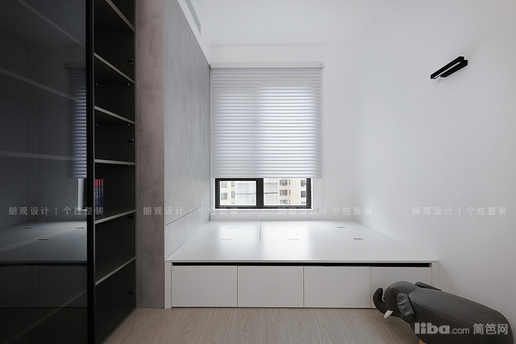 次卧作为儿童房,除了必要的储物空间外,学习空间也很重要。设计师先利用榻榻米设计提升空间利用率,增加储物空间,满足孩子的休息区;然后利用飘窗,定制超长书桌,方便孩子学习和家长陪读。