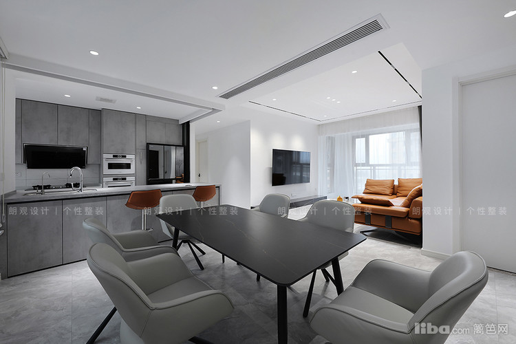 将玄关区域打开,与餐厅、厨房连为一体,将零散的功能区整合在一起,形成更为宽敞的空间感。