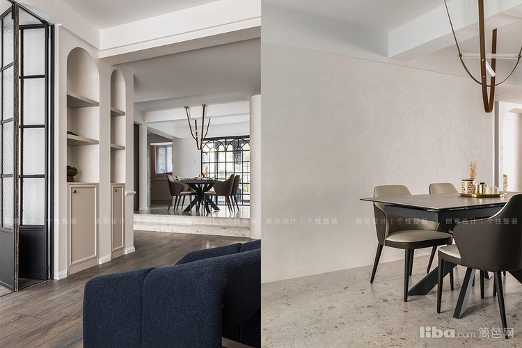 女主人喜欢和朋友聚会,享受下午茶时间,但原始餐厅区域对于多人聚会略有不足。设计师经过结构调整,扩大餐厅,结合原户型的错层设计,让餐厅聚会更有氛围感。