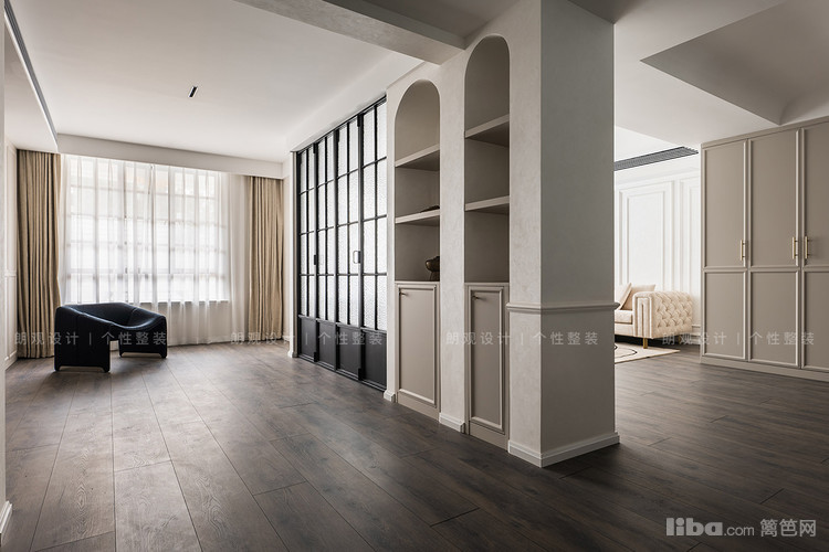 书房在硬装上注重储物功能和细节设计:整墙的柜体不仅解决书房的储物问题,还弥补客厅储物不足的遗憾。