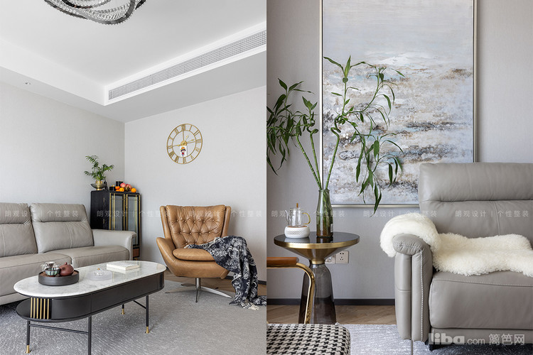 客厅设计简洁干净,尽显轻松、自然、舒适。空间之内,在浅灰色涂漆和温润地板的映衬下,简约的家具,翠绿的植物交织出温暖气息,让家的意境更自在有趣。