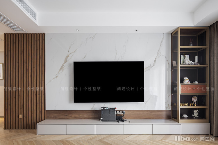 背景设计融入了材质的碰撞,自然木纹和大理石瓷砖的以及金属元素的加持,色彩柔和,纹理真实有质感。