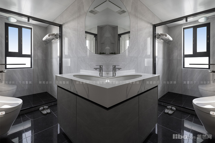 采用黑白灰配色,大面积的灰色墙砖增加室内明亮度,营造清爽高级的空间感。