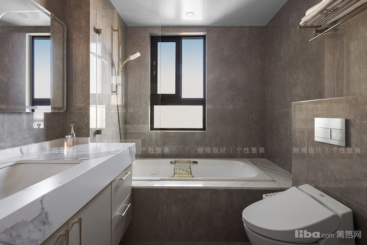 空间调整增加浴缸提升生活品质,墙面通过深咖色瓷砖与精致的五金相衬,营造轻奢高端的空间气质。