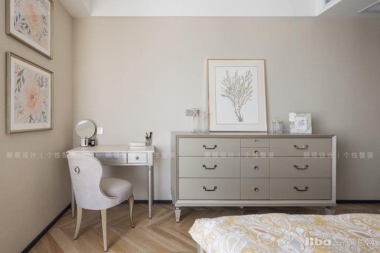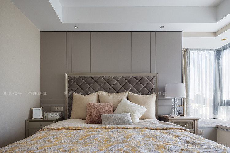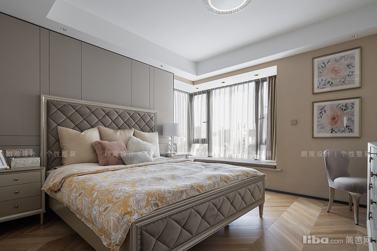 主卧的设计延续了美式轻奢的意境,干净利落的线条在立面上充分延展空间,以简约线条和色块打造宁静自然的睡眠空间,低调与舒适尽数展现,柔软之处体现于家具单品的质感。