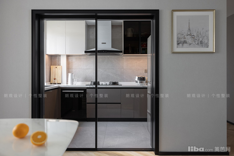 动线明晰,以推拉门做隔断突显空间通透感,提升自然采光的同时隔绝油烟