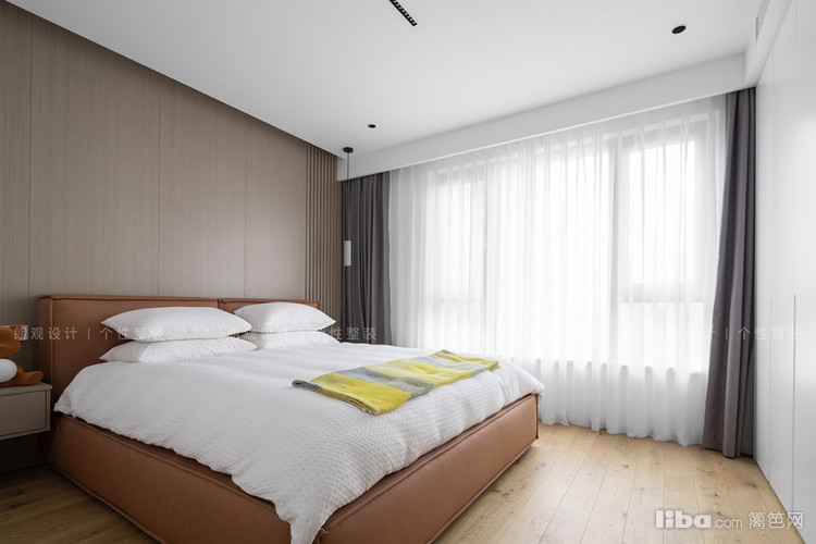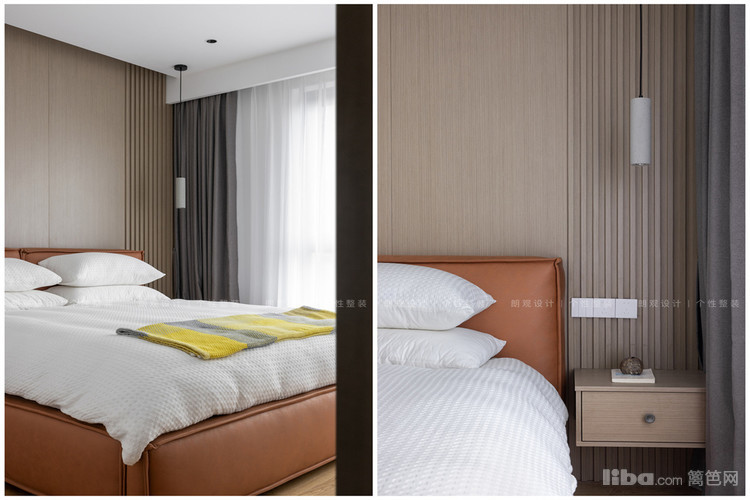 橙色调调的床结合木饰面的温馨,给人非常舒适安逸的感觉