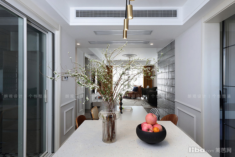 餐厅在延续法式风情的基础上,更加注重实用性,几株雪柳唤醒整个餐厅,营造唯美的用餐氛围。