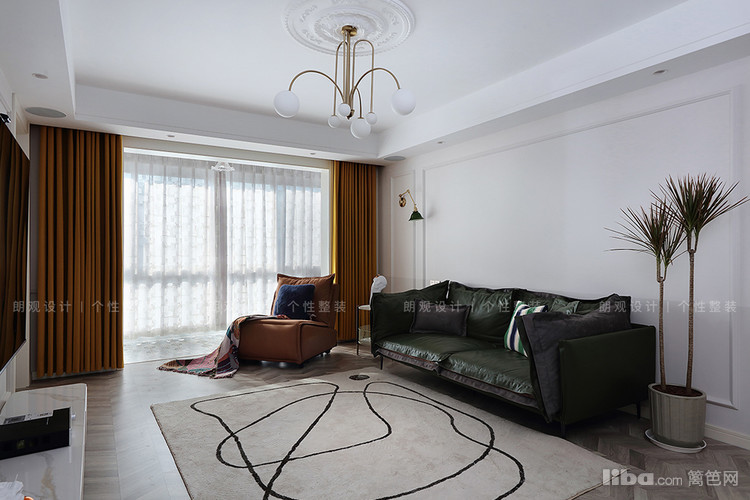 客厅整体空间采用撞色搭配,再通过自然光对不同材质的映射,打造出柔和温馨的居家体验。