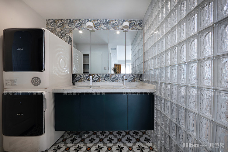 次卫经过改造实现了干湿分离,干区双台盆设计节约早上洗漱时间,同时用网红玻璃砖做隔断,既通透明亮还是家里的颜值担当。
