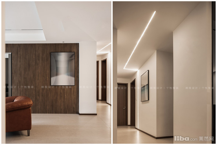 家里的过道作为动区与静区的过渡区域,设计师仅用一条灯带做引线,满足暗区照明需求。