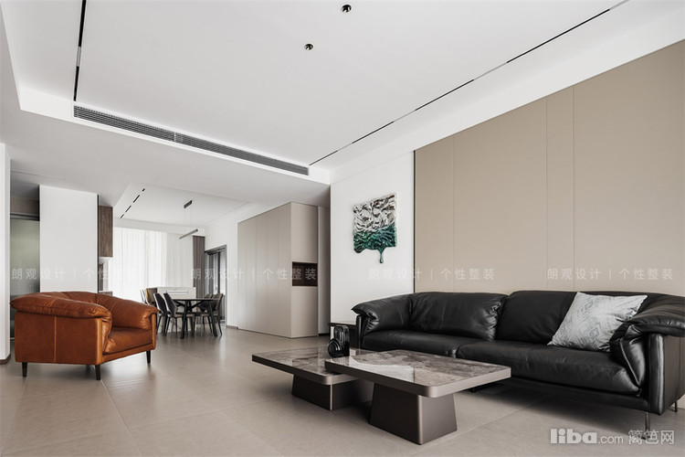 客厅以宽敞大方,利用无主灯设计让顶面更简约,视觉上拉伸层高,又能利用多层次光源营造丰富的生活氛围。