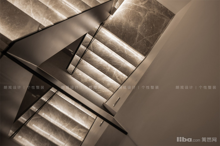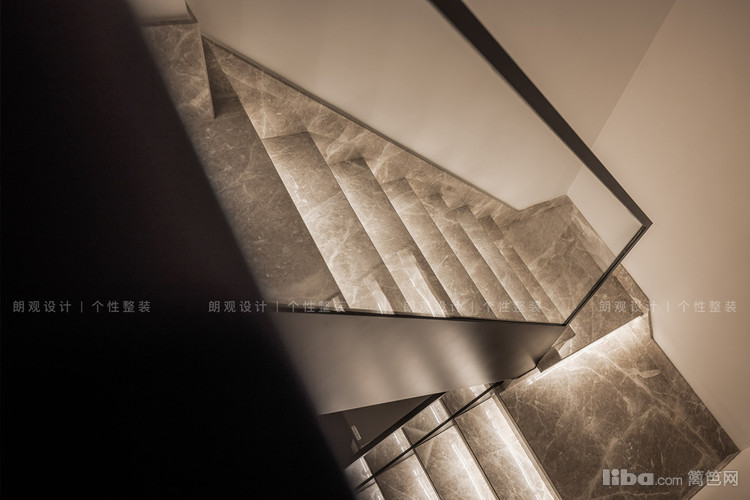 通往地下室的楼梯用黑色不透钢和透明玻璃做扶手,光线的流动让方寸间有了别样风采。尤其是阶梯上嵌入的反光灯带,让楼梯在白天与夜间呈现出不同的氛围感。
