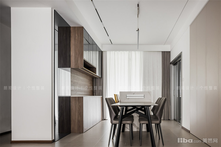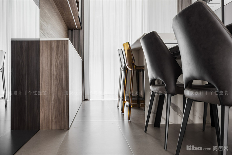 餐厅采用岛台+餐桌的组合形式,与餐边柜形成环形动线。