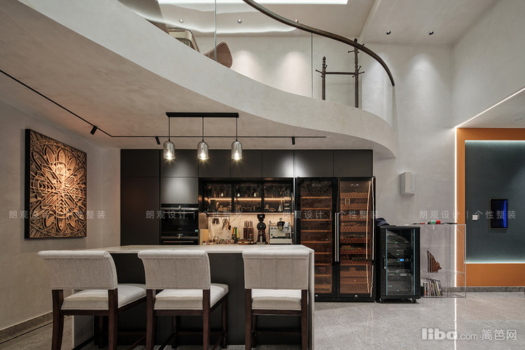 茶水吧在搭建层下面,可看到搭建层的弧度类似于钢琴弧度,奠定此处空间的优雅格调