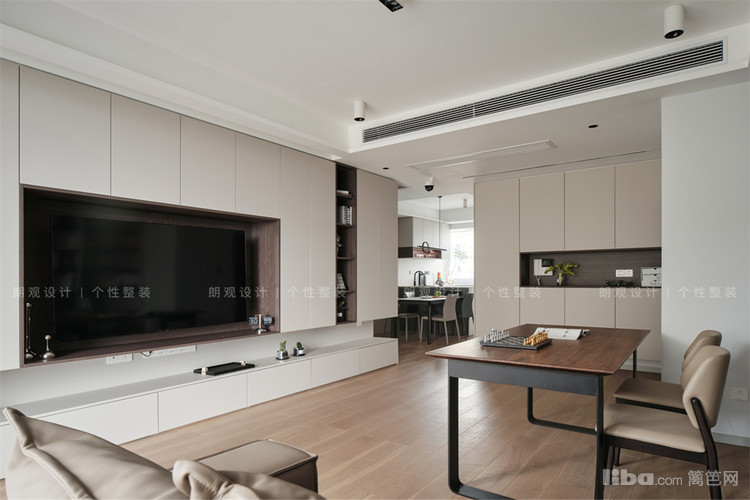 在客厅保留电视设备方便老人居住时观看,电视背景以储物型电视柜增加客厅收纳。