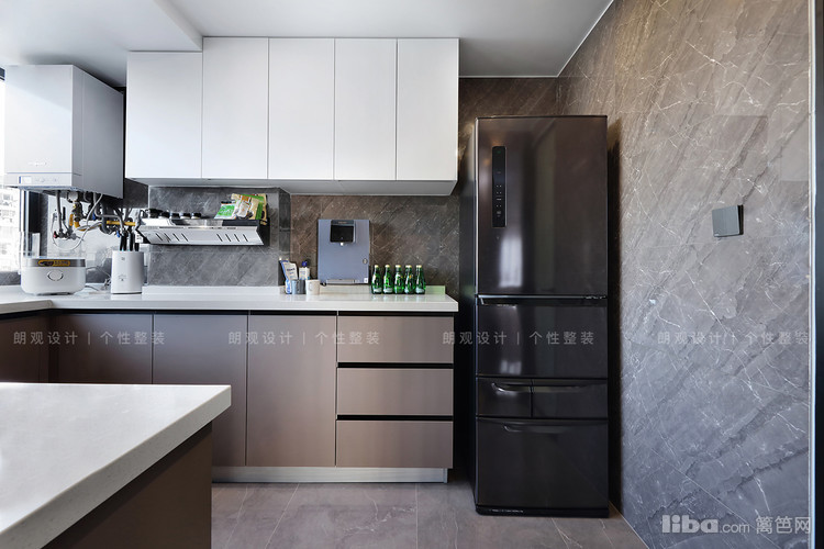 U型厨房拥有较好的采光,让灰白分层的色彩搭配更有主次。