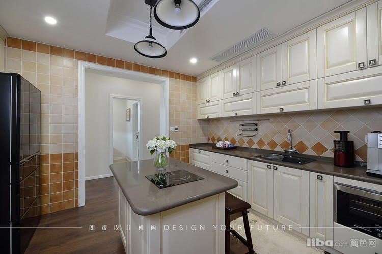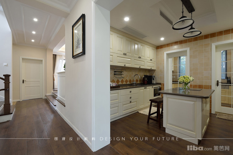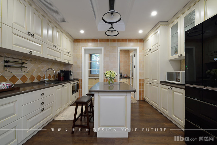 厨房是布置了中西厨,考虑到中厨的油烟比较大以封闭式,西厨敞开式,并且设计了中岛,让整个西厨区域更加紧凑,而且更加实用美观~