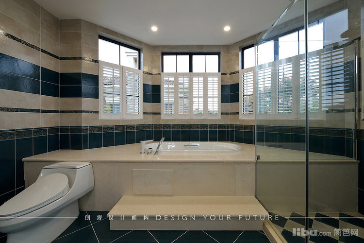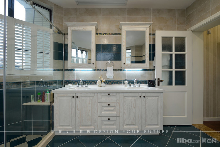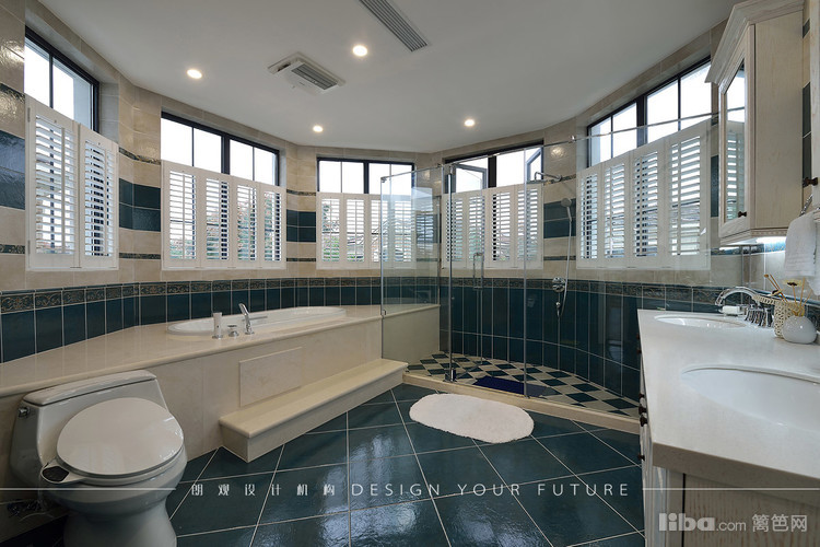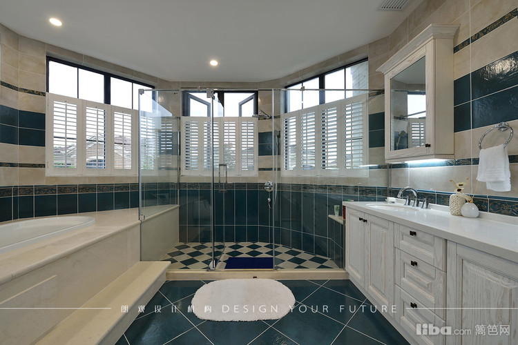 主卫的空间足够大,所以为了让业主使用更加舒适,同时做了浴缸和淋浴房以及双台盆的设计