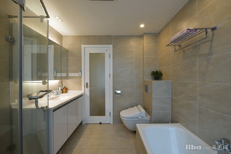客卫采用干湿分离的方式方便了家人使用,主卫马桶移位后空间进行重新布局,使得浴缸和淋浴房同时存在,并且显得很宽敞