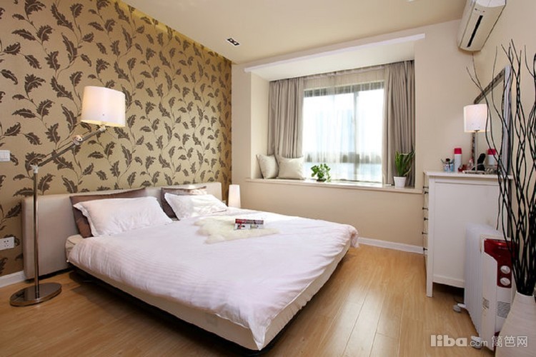 卧室配以墙纸装饰,简单不失时尚感。
