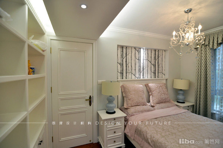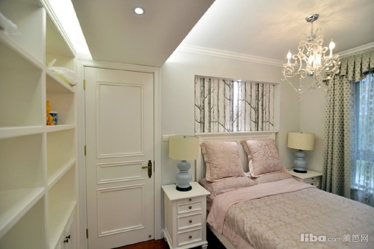 两个卧室也是以白色为主,床背景墙采用局部的墙纸点缀,同时最大限度的增加了主人的储藏空间。