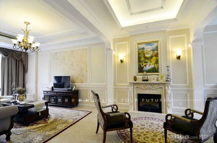 主卧吊顶的处理避免了原有的坡屋顶,同时在不影响层高的情况下,又做出了美式的大气