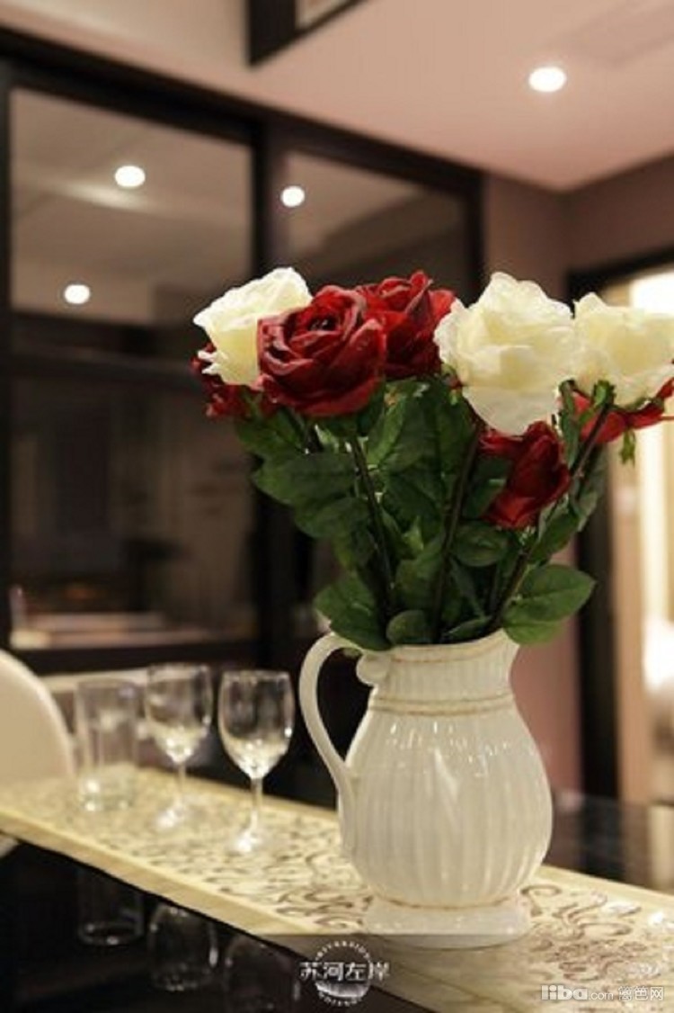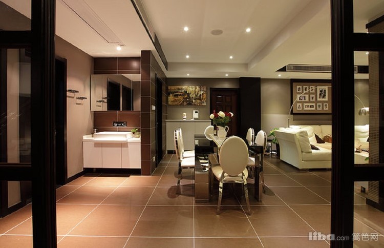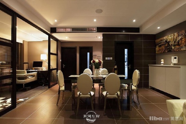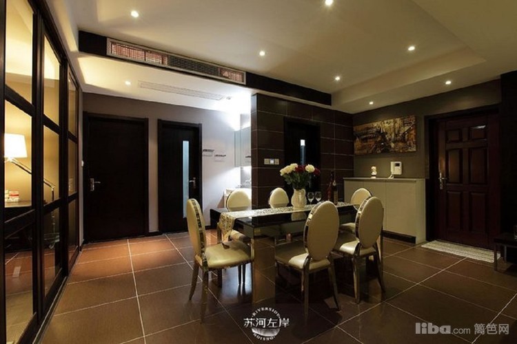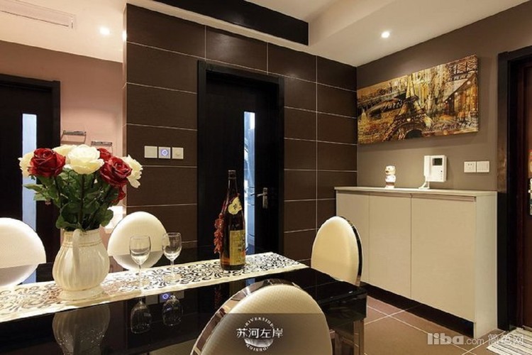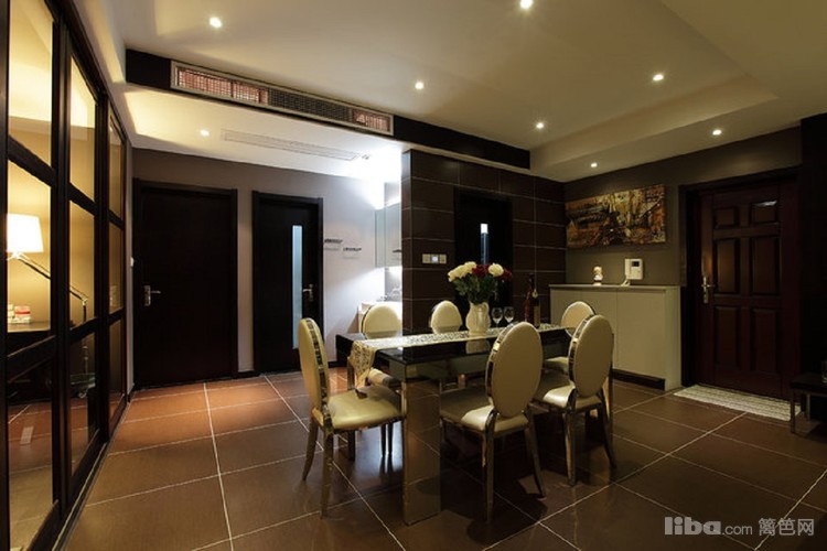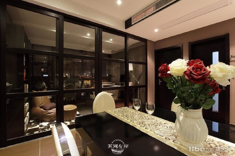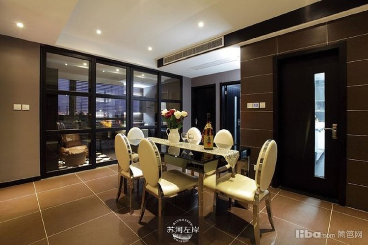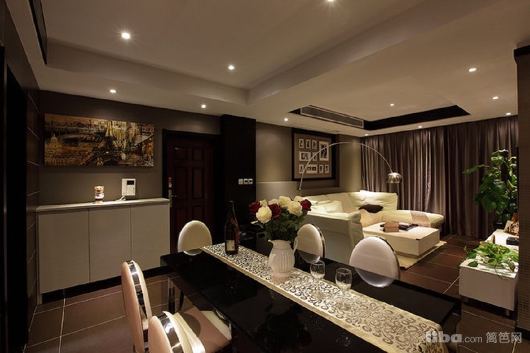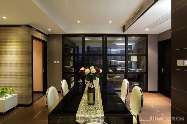 餐厅餐桌采用黑色镜面做装饰,与整体色调相融合,更显低调奢华。