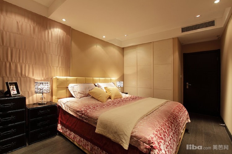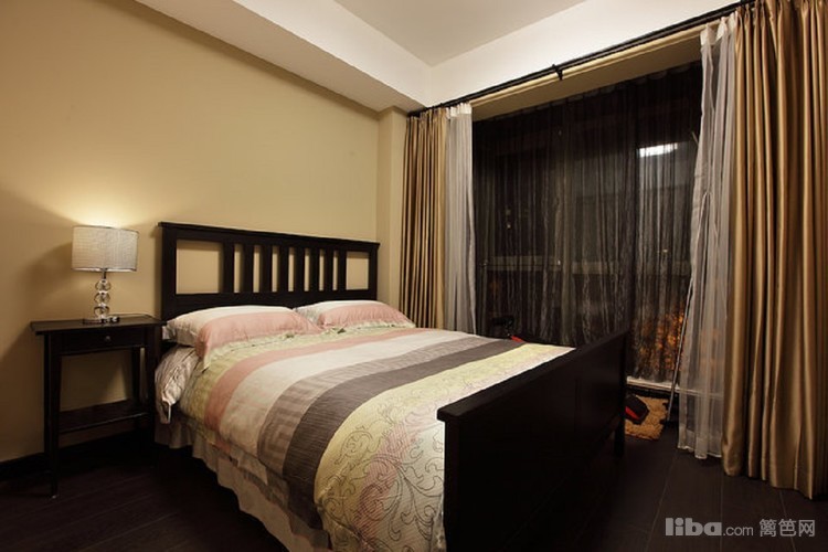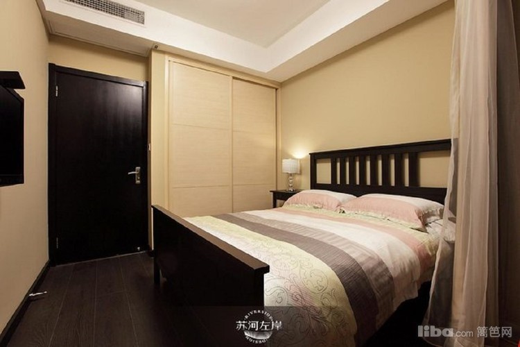 卧室墙面采用奶咖色更显温馨,黑色的床与地板简单大气,更显主人的品位与个性。