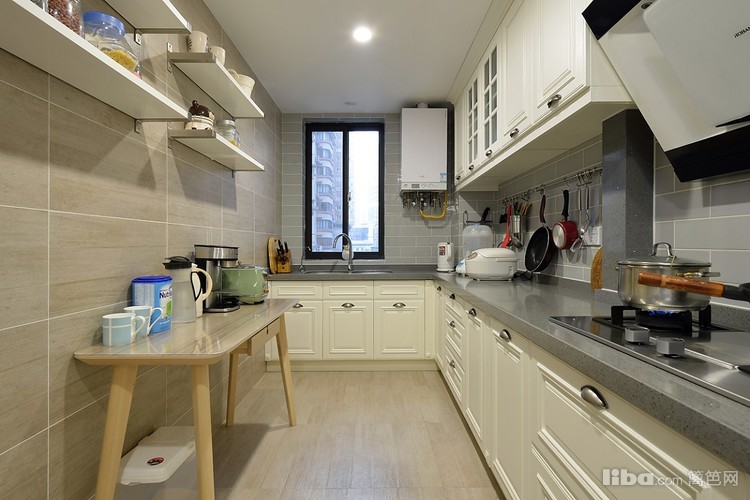 厨房主要考虑实用性,墙地砖也是干净的浅色调,易于打理。