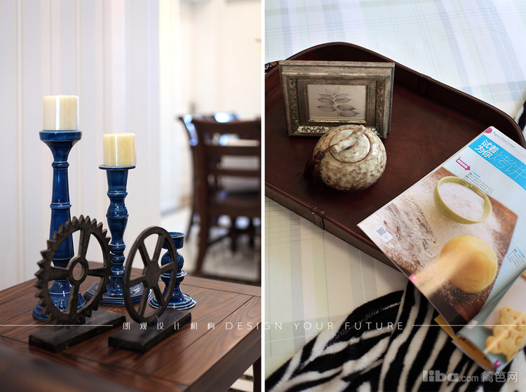 客厅家具颜色倍感成熟稳重,蓝白相间的壁纸,让整个空间活跃起来,精致的皮沙发配上实木的茶几,经典的美式风情呼之欲出~