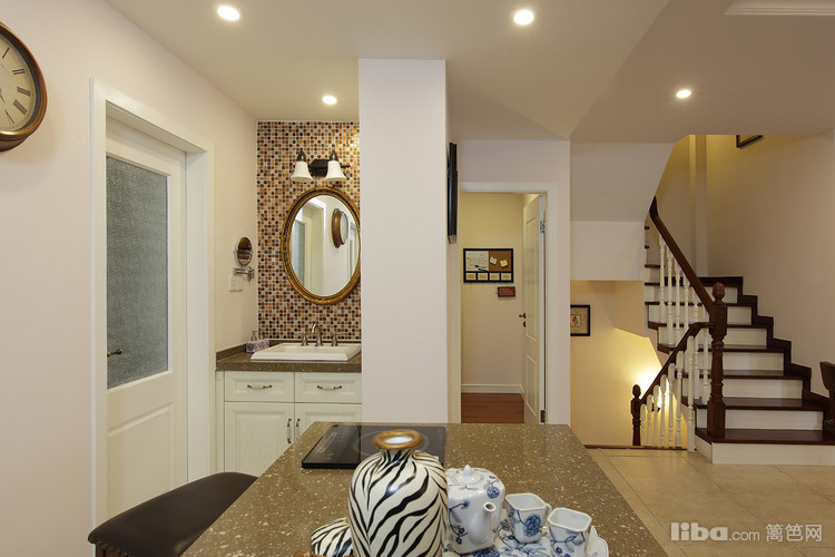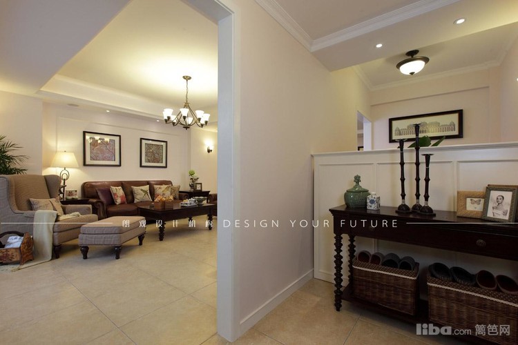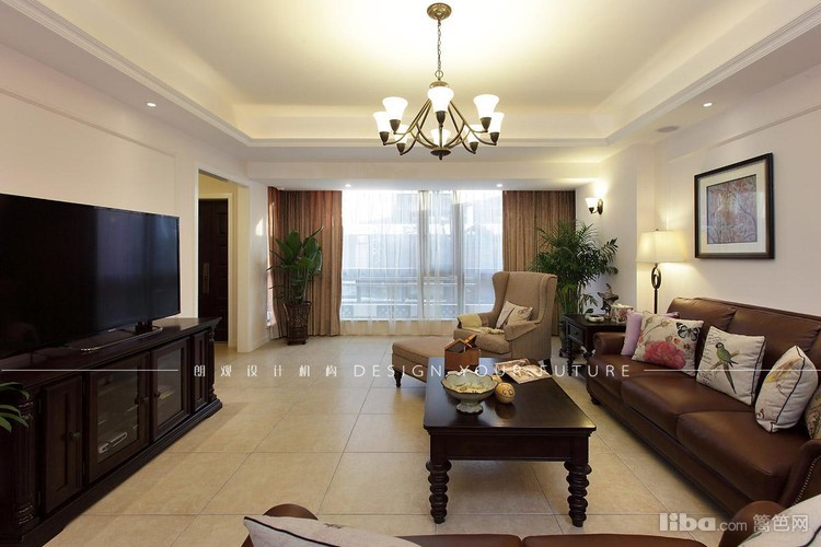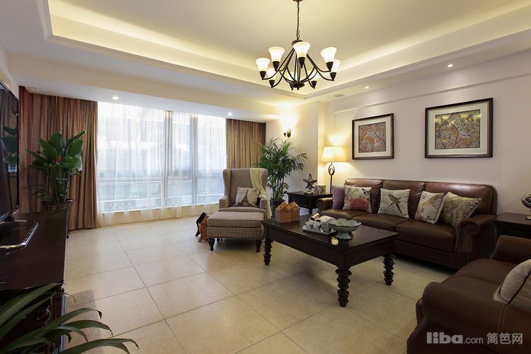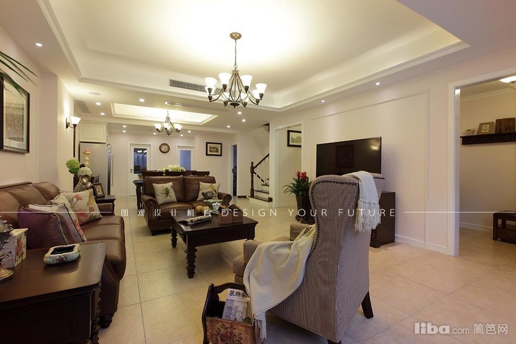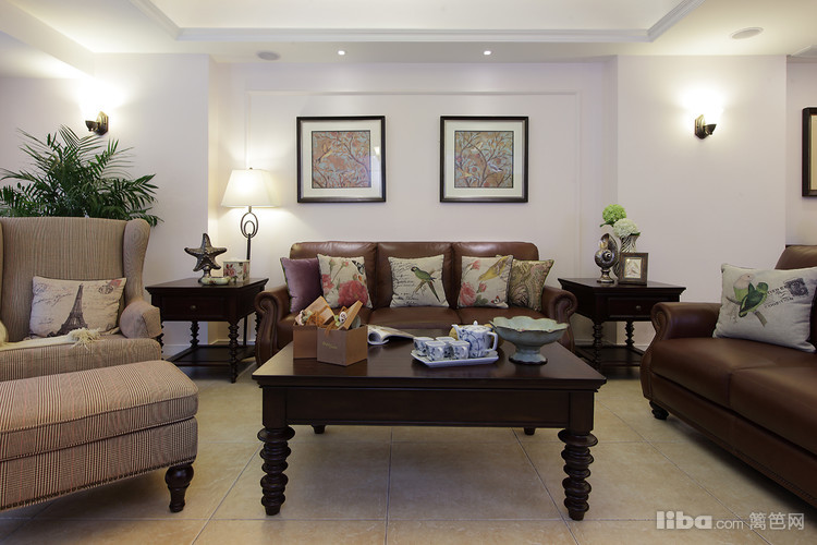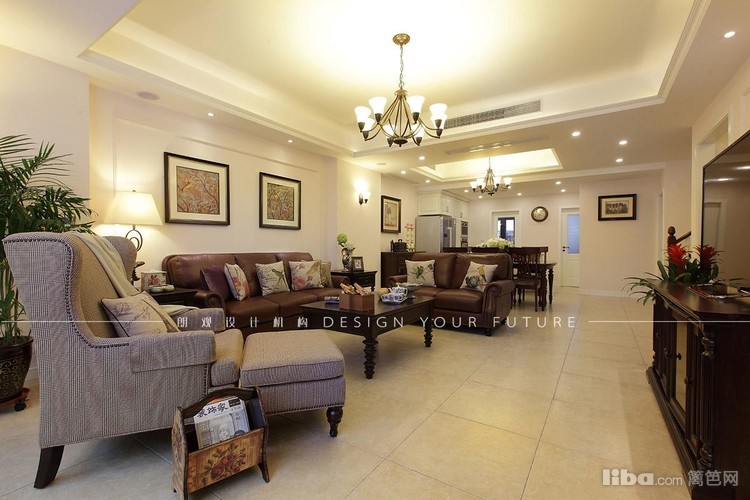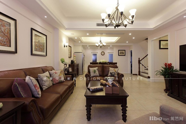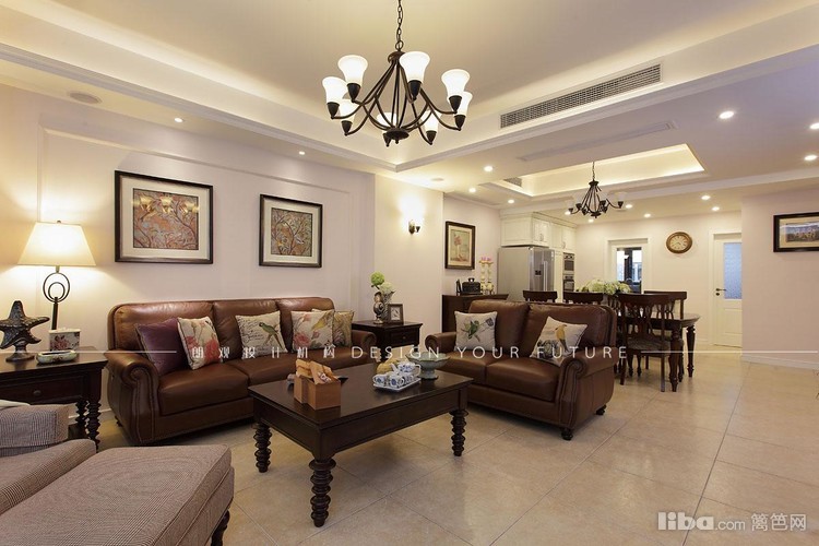 皮质沙发,仿古地砖,铁艺灯具,都体现了美式风格的历史沉淀和简洁大气。