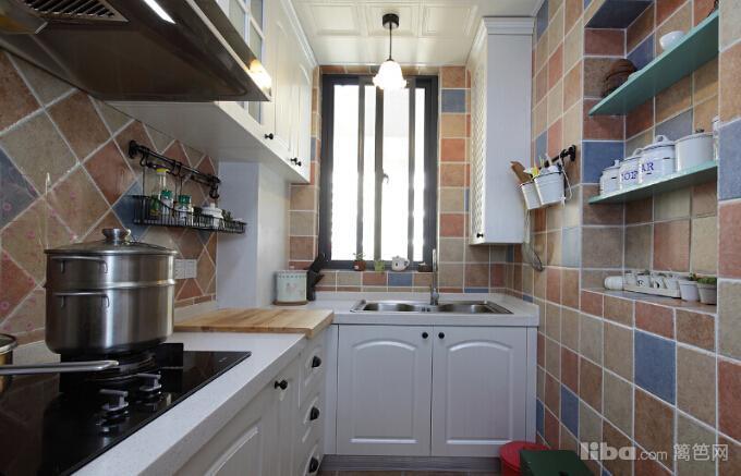 厨房采用五色砖混铺,正铺和斜铺混合,让整个厨房更加出彩。