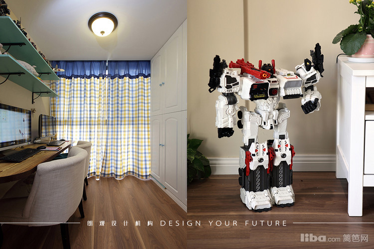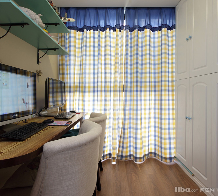 北阳台区域做成了一个开放式书房,空间不大却可以容得下两个人同时办公,隔板和顶天立地的柜子都大大的增加了储藏空间