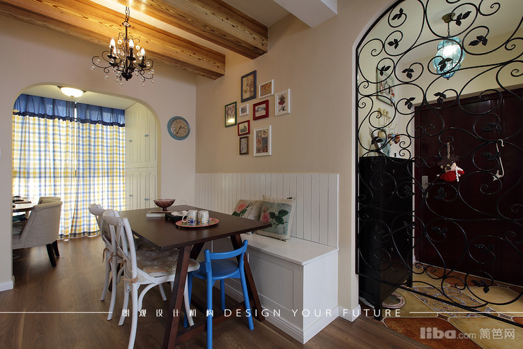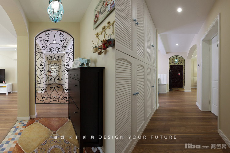 进门处做了铁艺的玄关,做到了空间上的隔断也成了进门的一个景观~