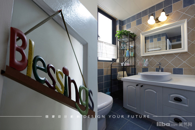 卫生间也是采用仿古砖,正铺和斜铺混合的方式,整体感觉干净清爽。