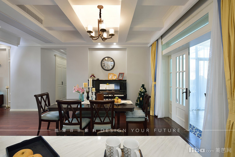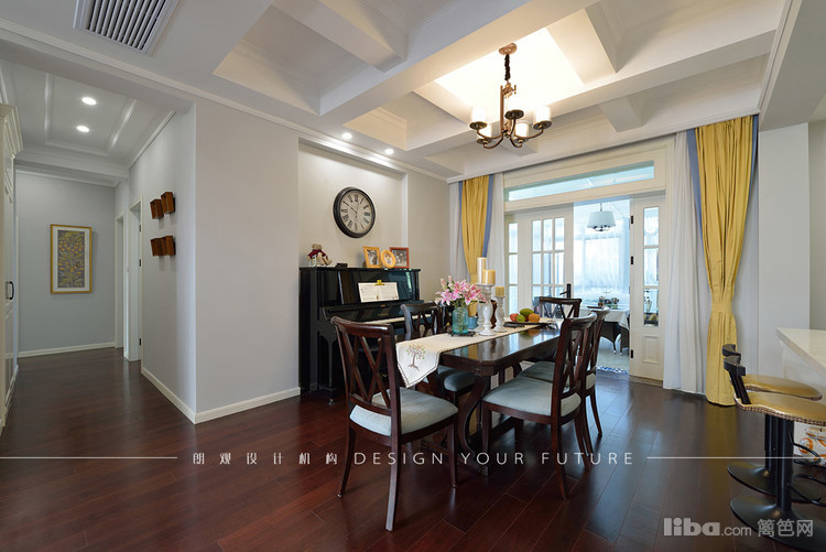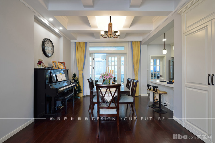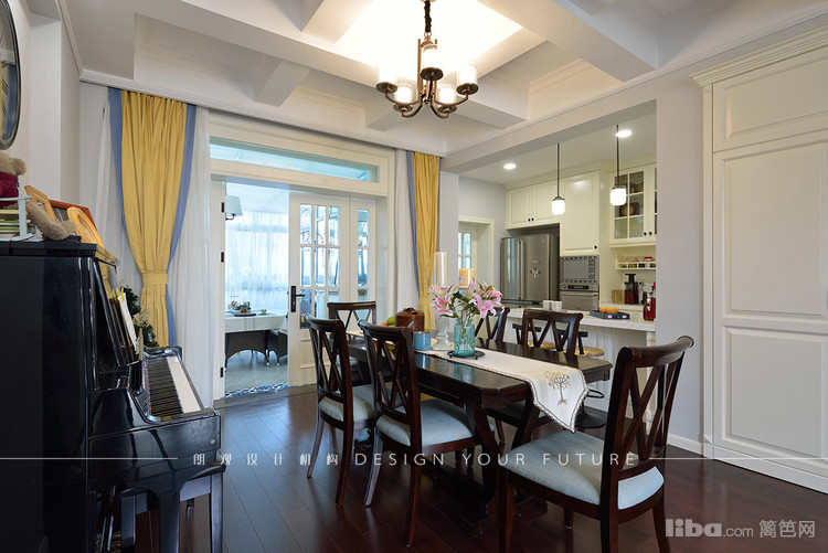 餐厅的餐座椅采用深色的家具,利用过道放置了钢琴增添了生活情趣,窗帘的柠檬黄提亮了整个空间,简单个性~