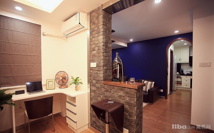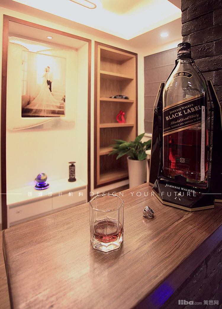 在过道转角处做出一个书房区与吧台,满足了主人对功能上的划分。