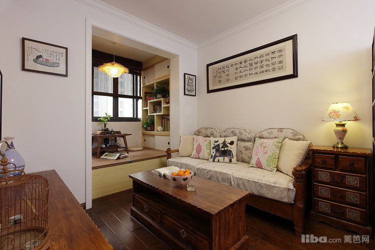 客厅与阳台打通,做出一个榻榻米的空间,增加了储藏空间同时,也多了休闲和会客的地方