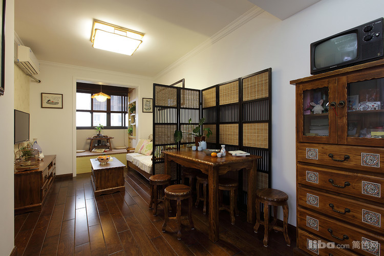 由于空间的限制,餐厅与客厅之间采用屏风隔断,做到隔而不断的效果。