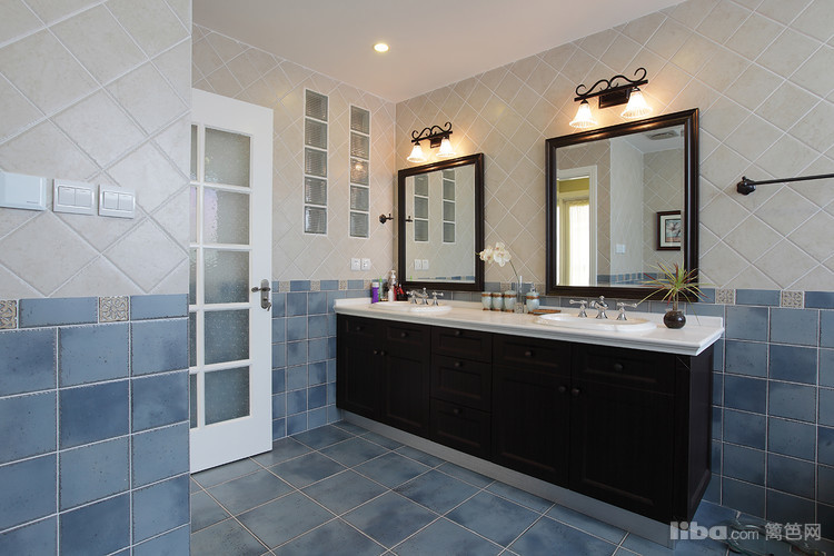 卫生间从满足使用功能需求出发,不管是墙地砖颜色铺法,还是洁具的造型,都是与整体风格相呼应的