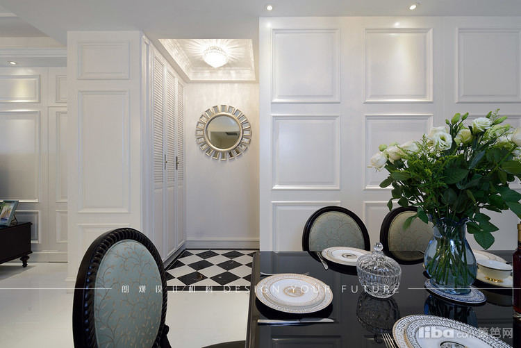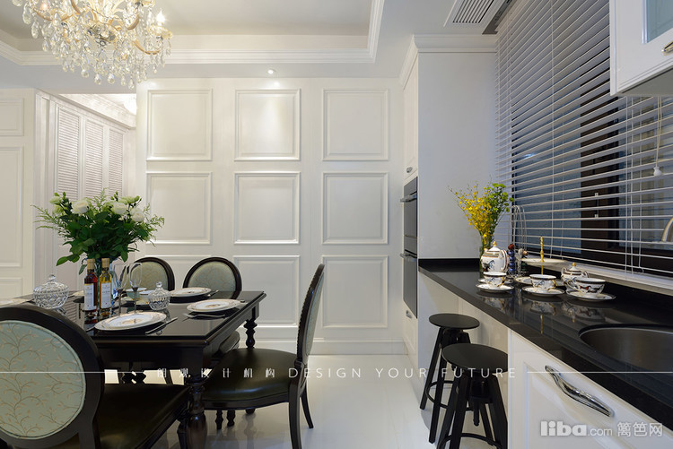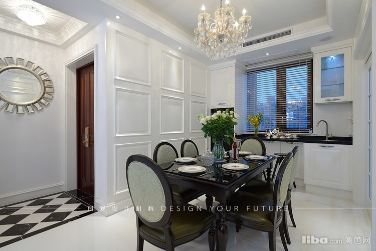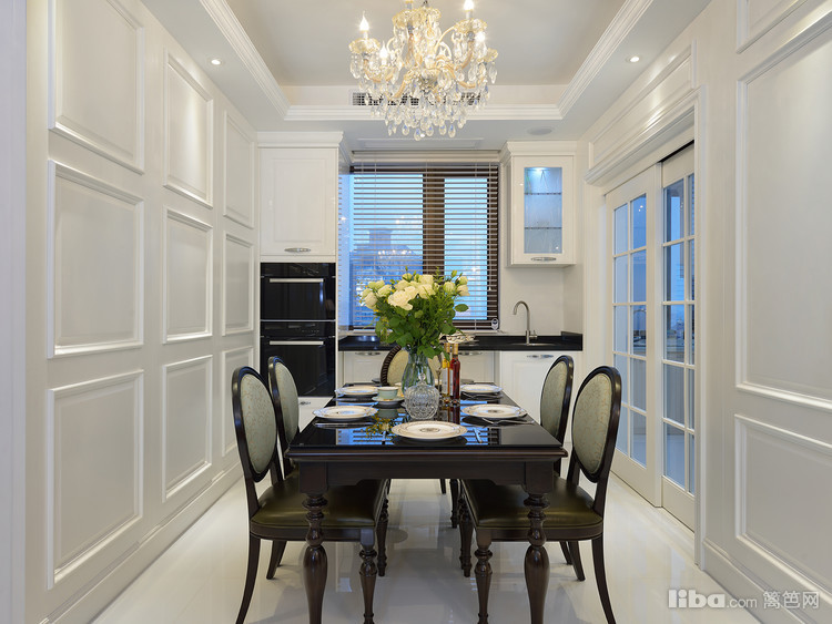 餐厅区域跟客厅相连通,延续客厅的美式新古典风格,复古典雅又不失家的温馨。白色护墙板仿佛把人带入了冬天的银装素裹中,美不胜收!