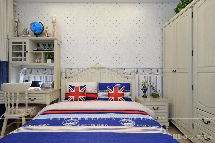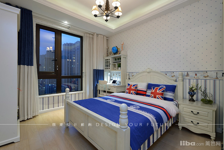 主卧也是延续复古奢华的路线,墙纸和床品的选择相得益彰!宝宝房则充满童趣,颜色比较欢快~